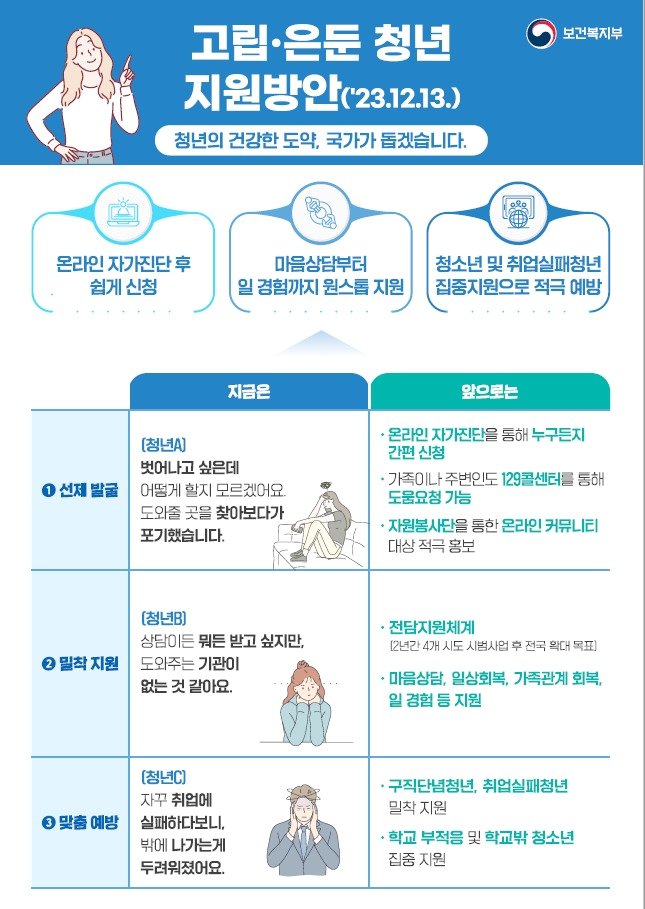 청소년 등 청년의 고립·은둔을 예방하기 위한 맞춤형 지원도 강화된다.